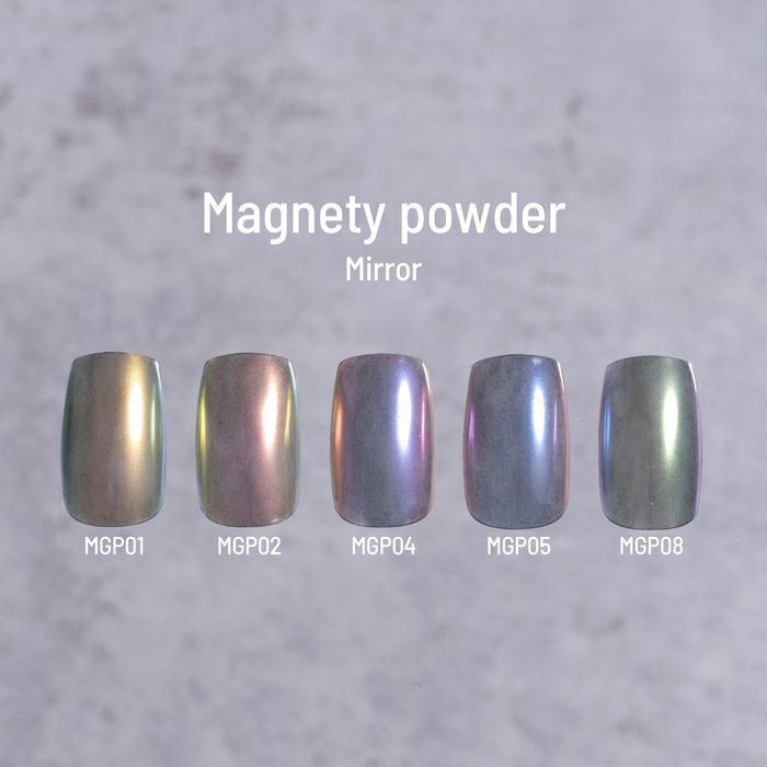 ミキシングジェルと混ぜて専用のマグネットを使用すると、奥行きのある模様やラインが浮かび上がる。混ぜるジェルによって輝きが変わり、ミラーパウダーとしても使える不思議なパウダー。
