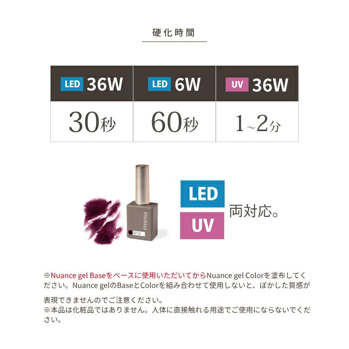 ニュアンスジェルのBaseとColorを組み合わせて使用しないと、ぼかした質感が表現できませんのでご注意ください。