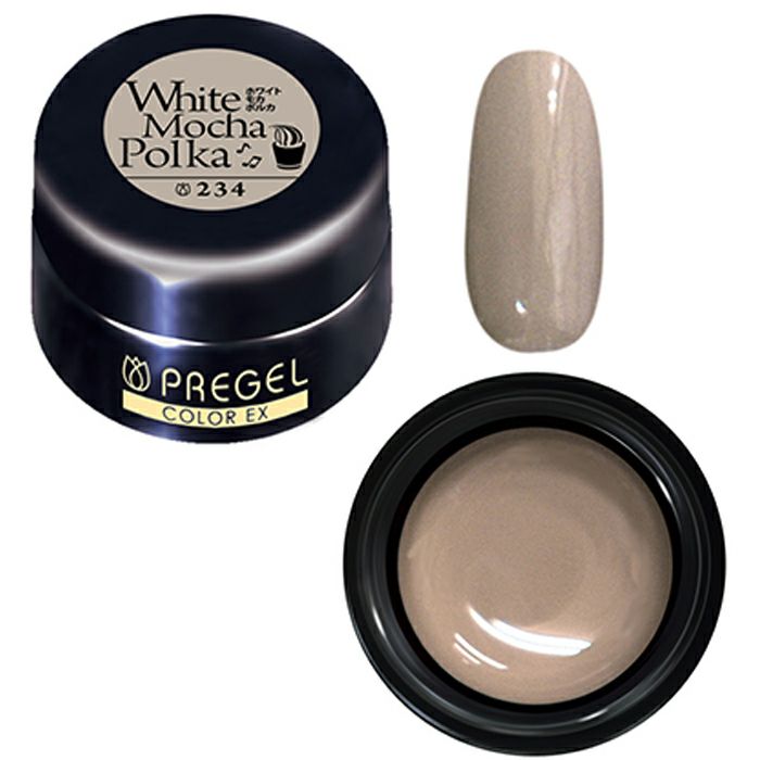 操作性・発色・密着力にこだわったプリジェルカラーEXシリーズの、こちらはホワイトモカポルカです。